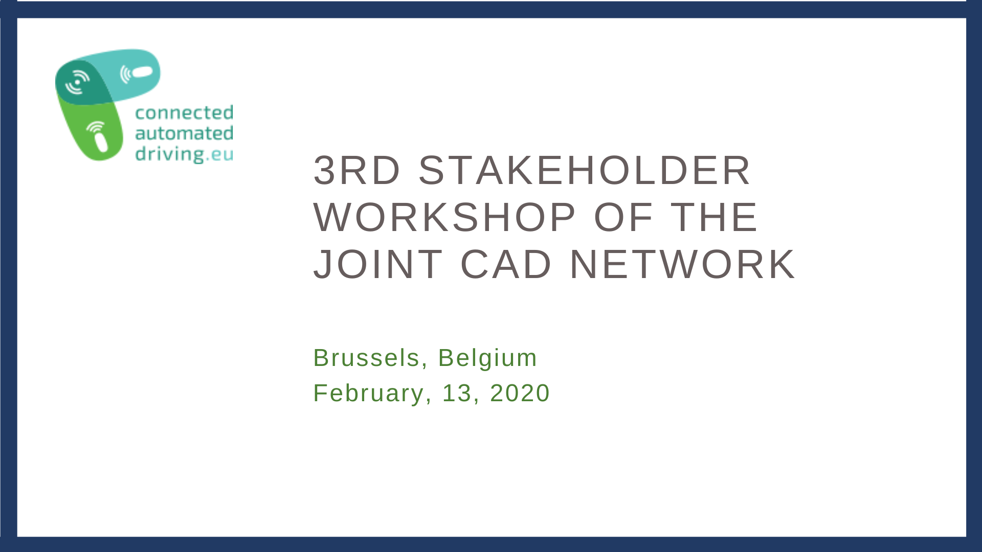 The next stakeholder of ARCADE Joint Connected and Automated Driving (CAD) Network and ERTRAC Working Group on “Connectivity and Automated Driving” will take place in Brussels, Belgium on 13 February 2020.